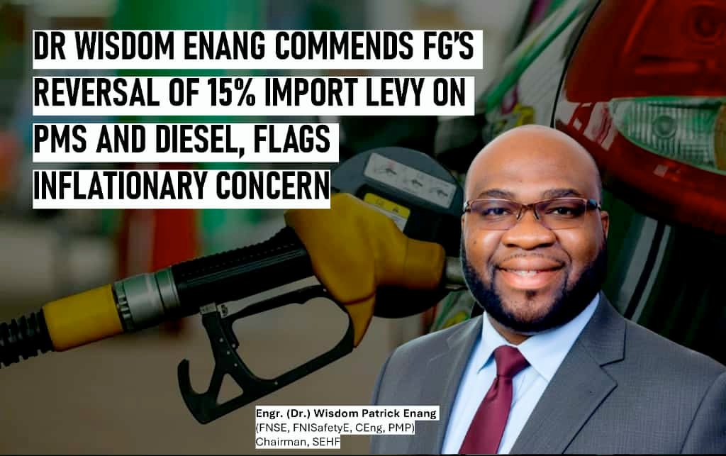 Oil and gas expert and public policy analyst, Engr. (Dr.) Wisdom Patrick Enang, has commended the Federal Government for reversing the proposed 15% import levy on Premium Motor Spirit (PMS) and Automotive Gas Oil (diesel). The levy, which was briefly approved as part of measures to reshape Nigeria’s petroleum sector, had raised concerns over its potential impact on fuel pricing and inflation.