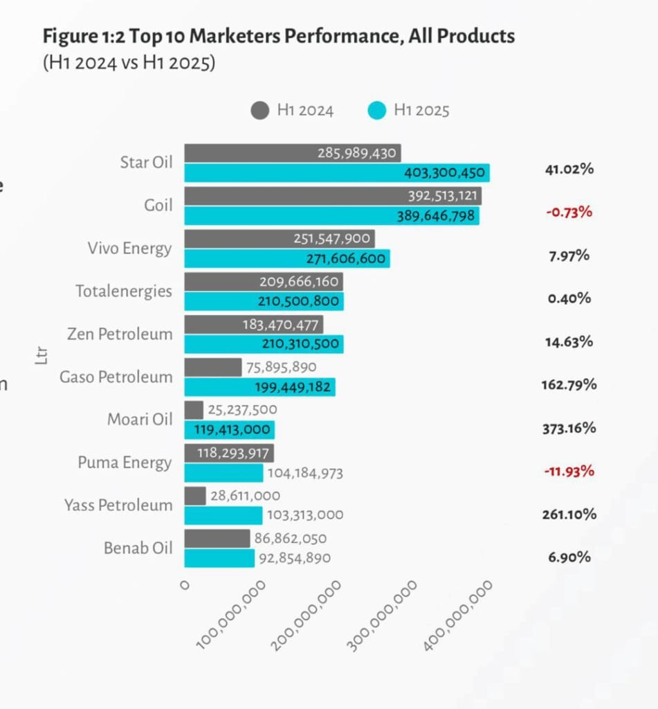 In contrast, GoEnergy (-3.46%) and Blue Ocean (-10.86%) saw declines in volume and market share — trends reflected in their affiliated OMCs, GOIL and Puma Energy, during the same period.